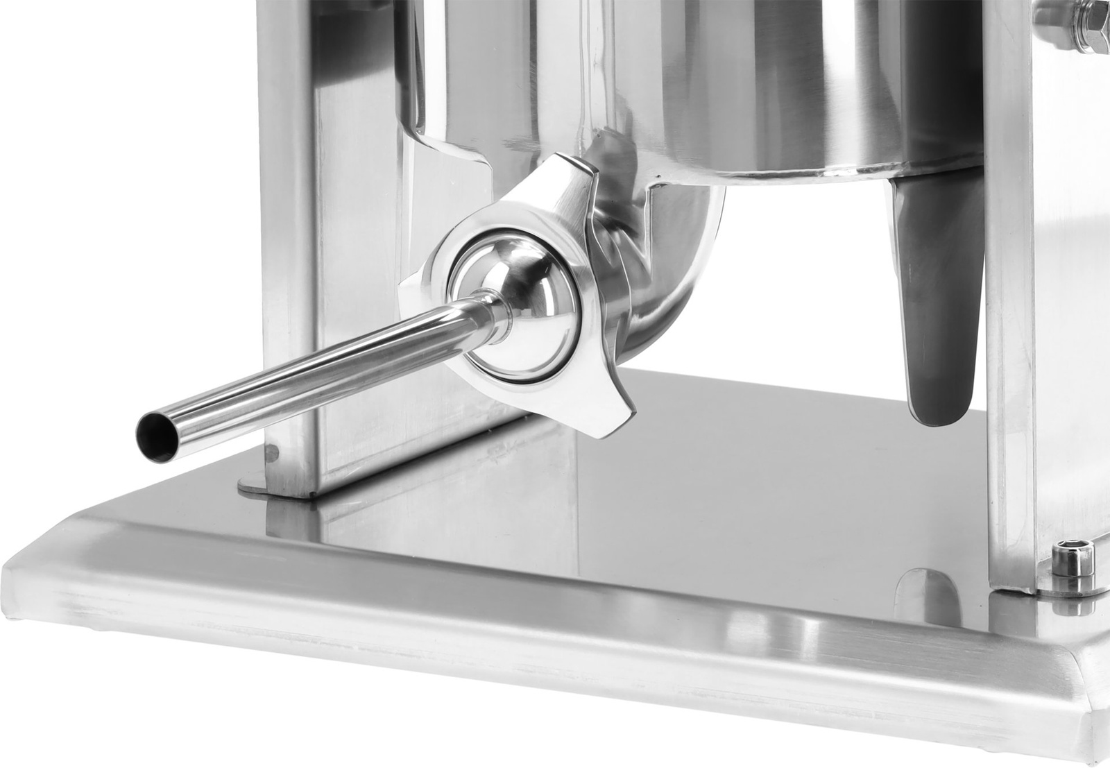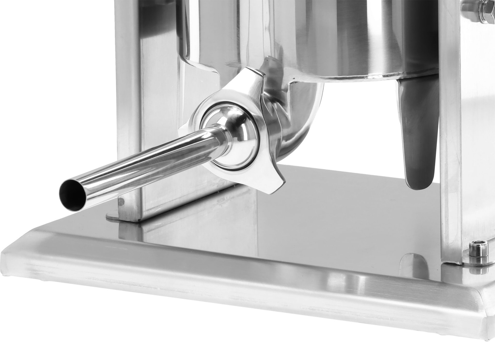 Echipată cu patru pâlnii de diferite diametre, permite pregătirea produselor de orice grosime. Garnitura de silicon a pistonului previne scurgerea umpluturii, iar stabilitatea în timpul lucrului este asigurată de picioarele antiderapante. Utilizarea dispozitivului este confortabilă și datorită pedalei de picior incluse. Este alegerea ideală pentru restaurante, afumători, vânători și toți iubitorii de produse de carne făcute în casă.