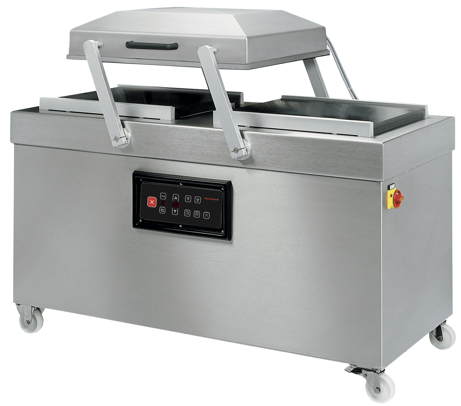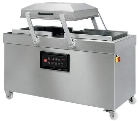Mașină mobilă de ambalat în vid VAC-STAR INV 11/11 - FB B160 este o mașină avansată proiectată pentru utilizare intensivă în industria alimentară, catering și fabrici de prelucrare. Cu camere mai mari și o pompă de vid mai puternică, acest model oferă și mai multă eficiență și fiabilitate în ambalarea în vid.