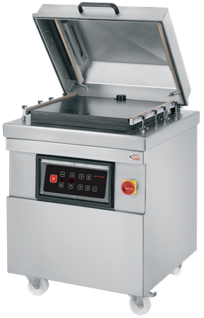 Carcasa din oțel inoxidabil de înaltă calitate garantează durabilitatea, igiena și ușurința de curățare. Capacul robust și panoul de control digital fac mașina ușor de utilizat, permițându-vă să ajustați parametrii de funcționare la caracteristicile specifice ale produselor ambalate.