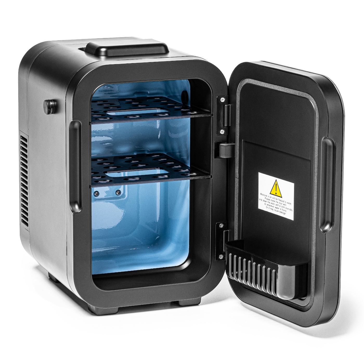 - Dimensiune compactă și capacitate de 8 litri: În ciuda dimensiunilor externe reduse, frigiderul poate conține până la 8 doze de 330 ml sau cosmetice, medicamente ori produse alimentare mici. Acest lucru facilitează organizarea spațiului oriunde contează mobilitatea.