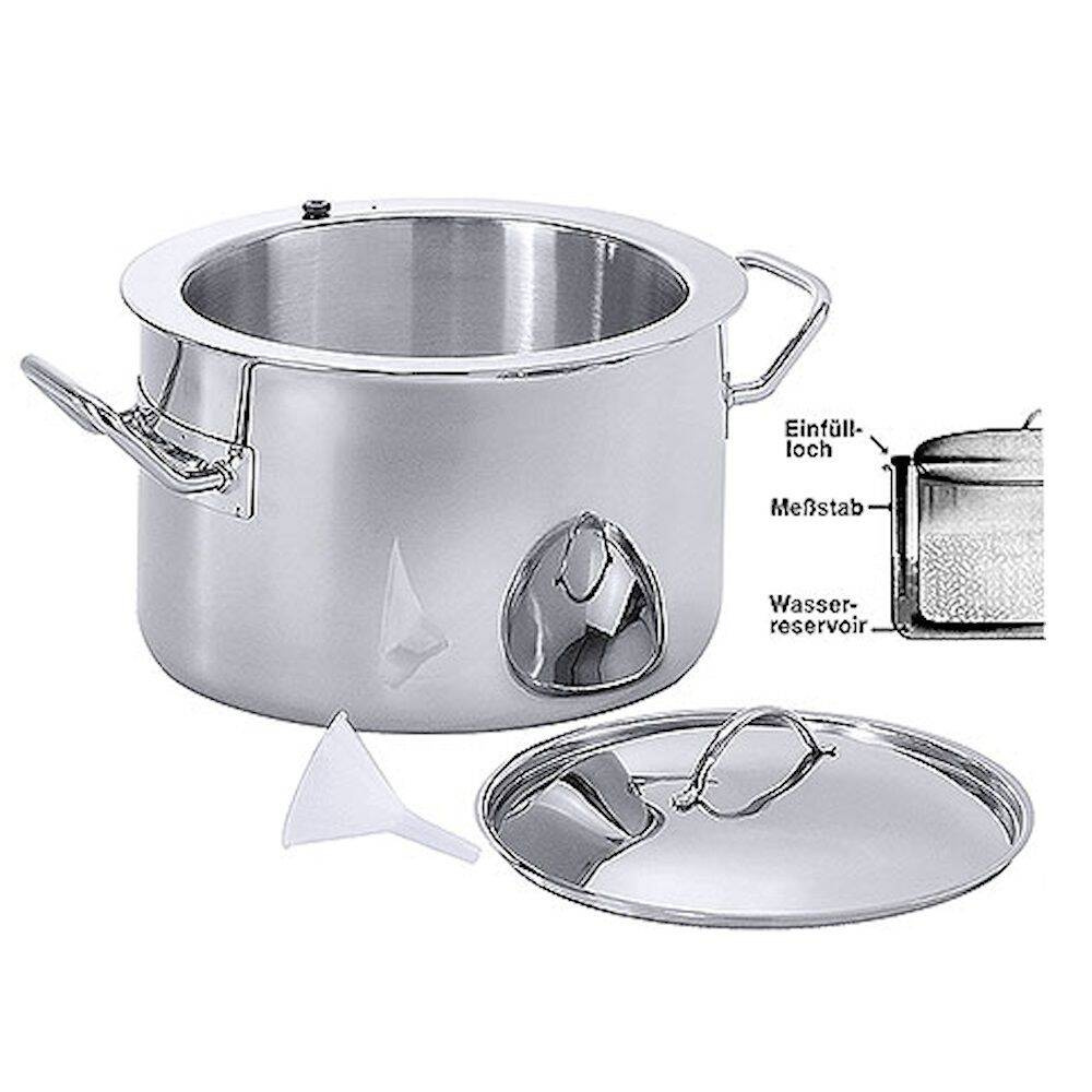 Oala pentru sosuri cu capac de la CONTACTO este ideală pentru gătitul zilnic, prepararea sosurilor, supelor sau pentru încălzirea laptelui. Pereții înalți și capacul bine adaptat permit distribuirea uniformă a căldurii și păstrarea aromei preparatelor. Datorită construcției din oțel, vasul este rezistent la deteriorări, iar mânerele asigură un transport sigur chiar și când oala este fierbinte. Pâlnia inclusă facilitează turnarea precisă a lichidelor fără riscul de vărsare.