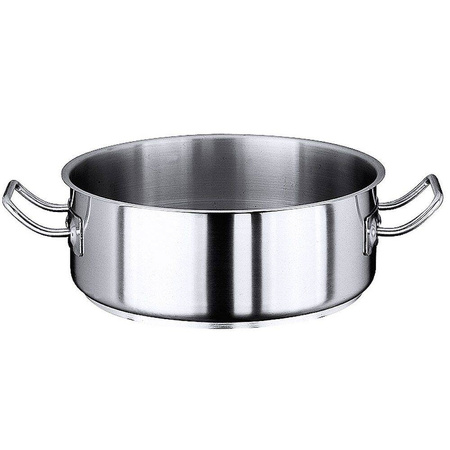 Oală joasă cu o capacitate de 38 l. Fabricată din oțel inoxidabil satinat. Fund de tip „sandwich”. Margine îndoită.