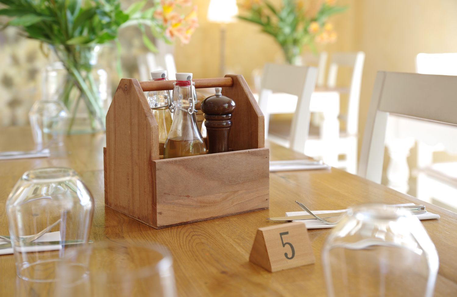 Organizator de masă echipat cu 2 compartimente și un mâner. Realizat din lemn rezistent.