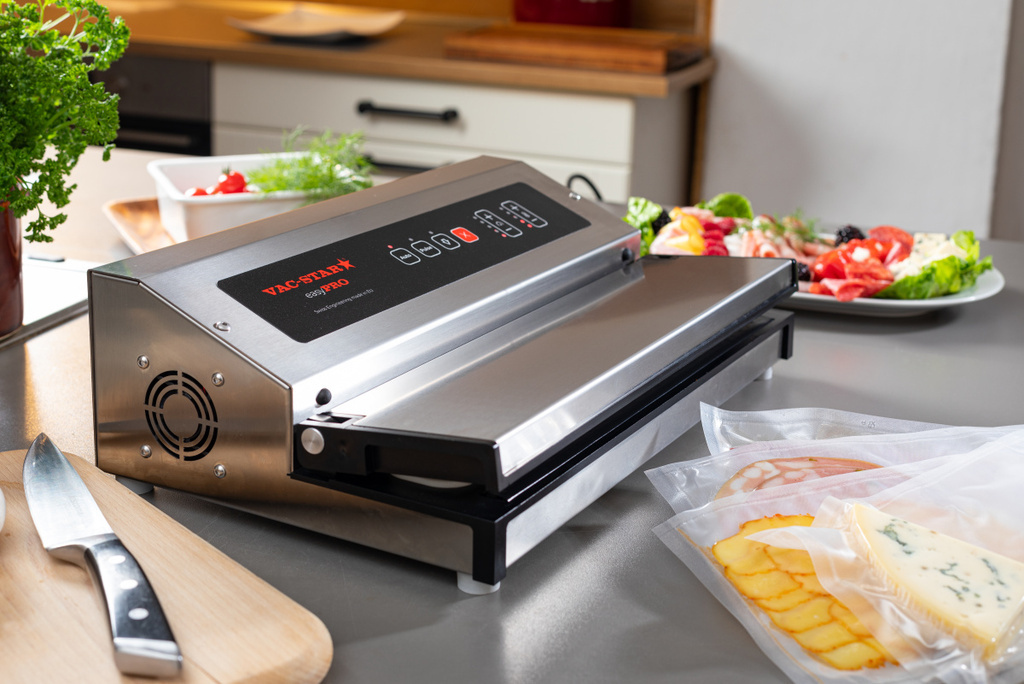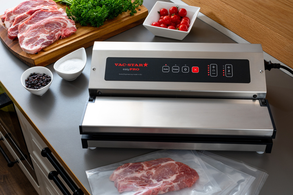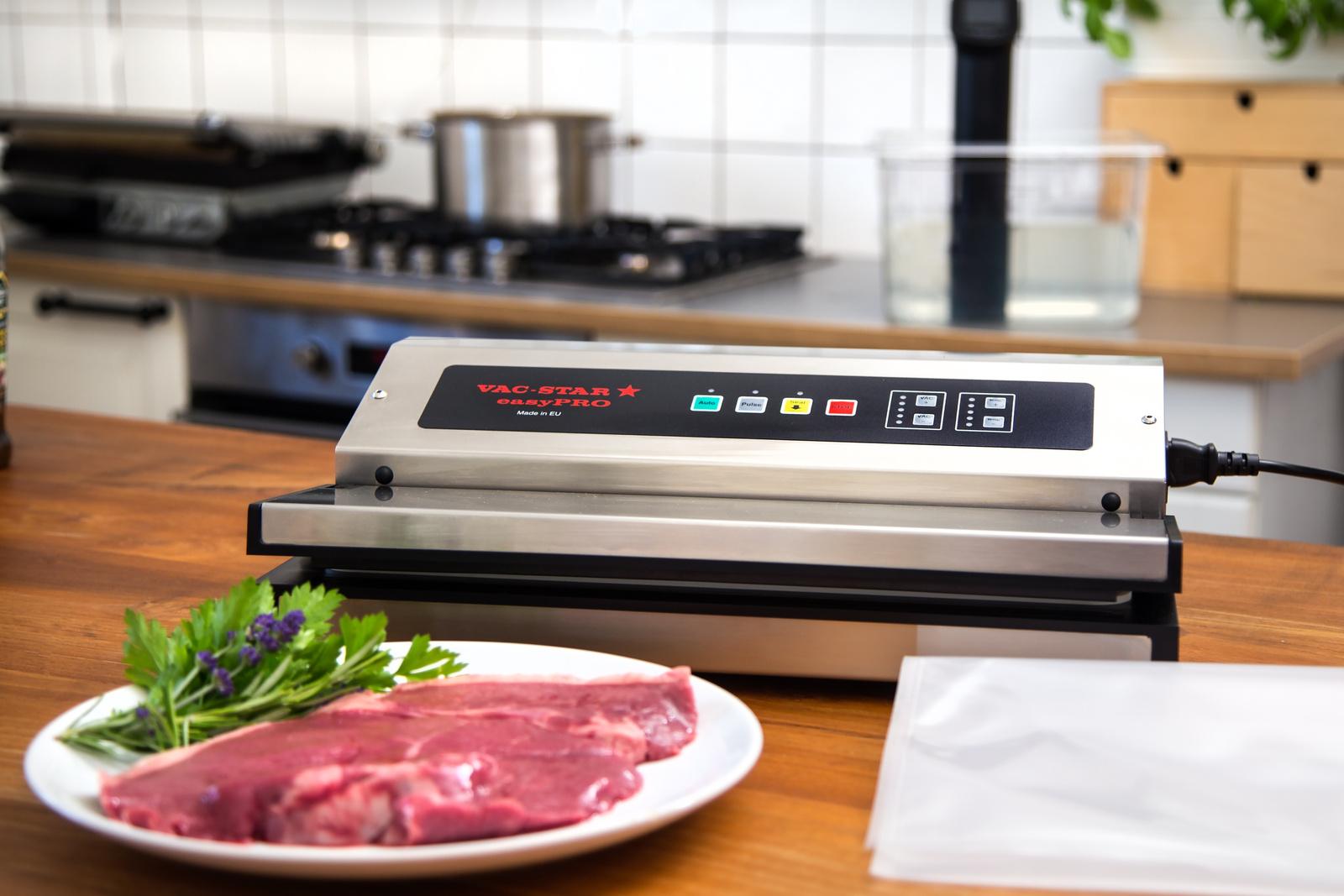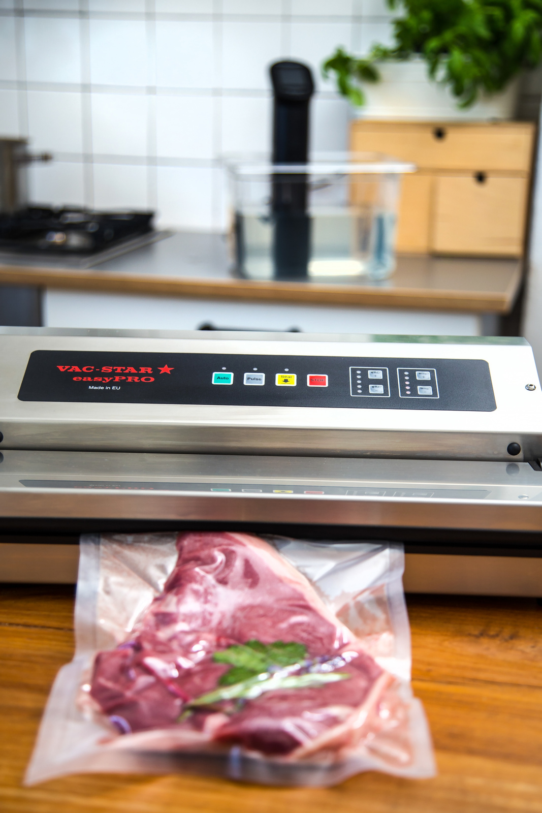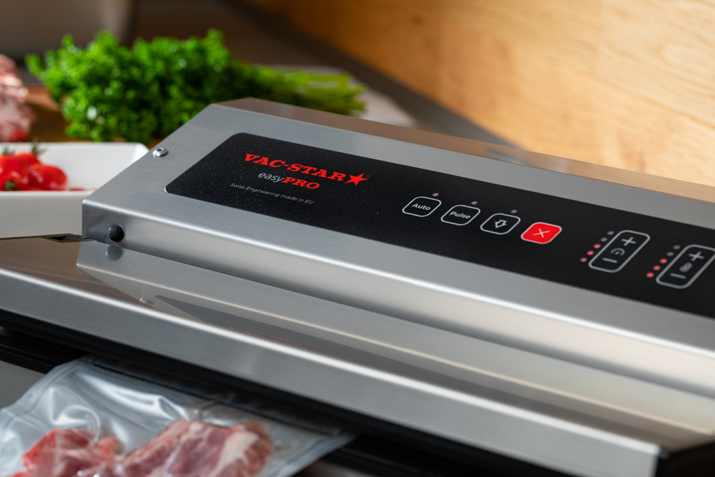 Masina de ambalat în vid easyPRO este un dispozitiv compact și solid, creat special pentru gospodăriile care doresc să păstreze prospețimea și savoarea produselor depozitate. Cu ajutorul acestui aparat, alimente precum carnea, legumele sau peștele rămân proaspete și pline de vitamine pentru mai mult timp. Ideală pentru pregătirea ingredientelor pentru gătitul sous-vide, easyPRO va satisface așteptările oricărei bucătării, indiferent de dimensiunea acesteia.