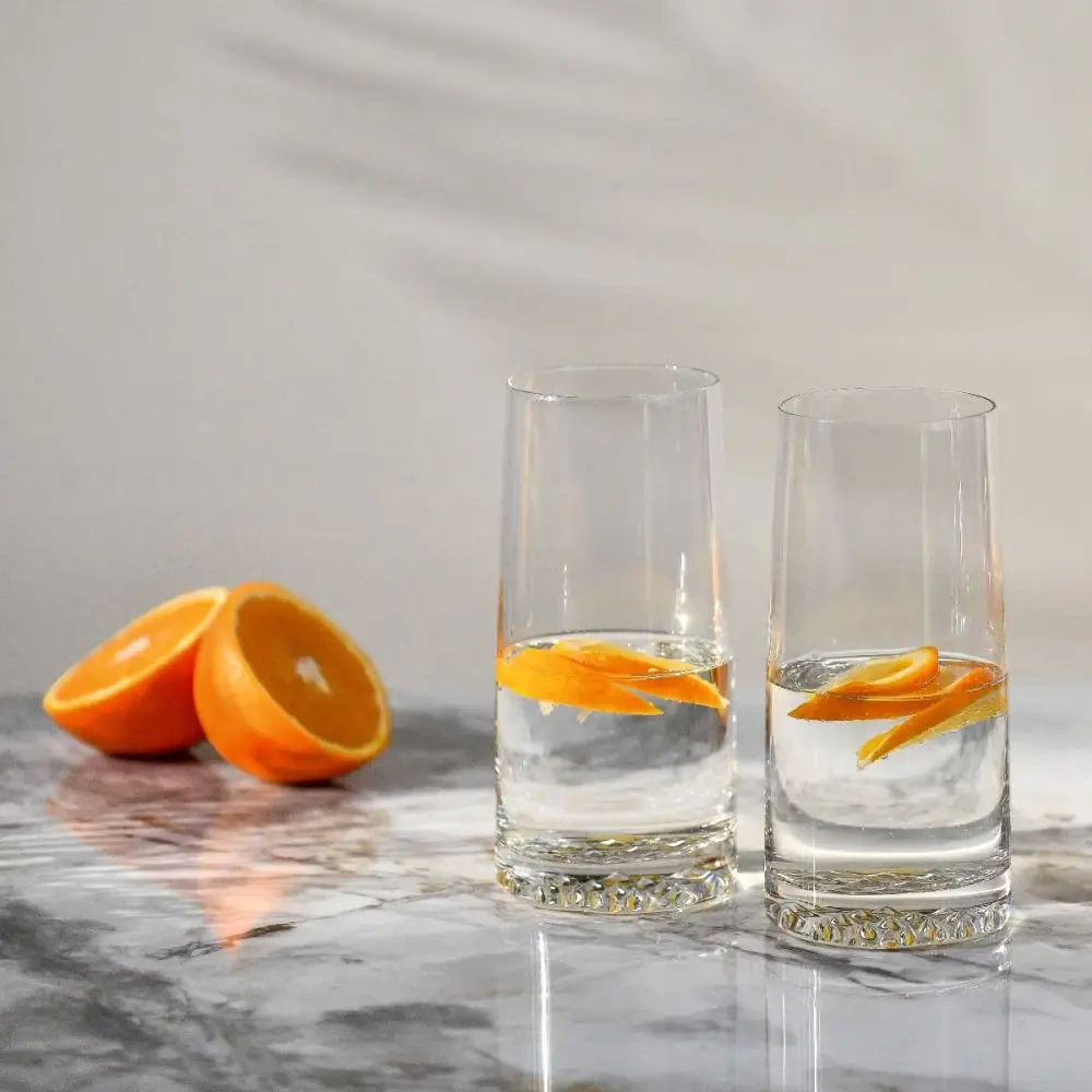 Paharele înalte pentru băuturi Fjord 480 ml de la KROSNO GLASS reprezintă un set elegant, care se remarcă prin designul modern și construcția solidă. Structura caracteristică, rugoasă a fundului amintește de cristalele de gheață, ceea ce face ca paharele să atragă privirea și să fie potrivite atât pentru uzul cotidian, cât și pentru servirea băuturilor la întâlniri cu prietenii. Sunt ideale pentru servirea apei, sucurilor, cocktailurilor sau băuturilor alcoolice, constituind un element de efect al serviciului de masă.