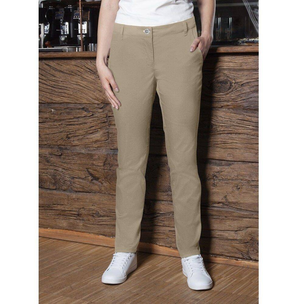 Pantaloni pentru femei cu 5 buzunare de Karlowsky. Culoare piatră gri. Fabricat din 98% bumbac organic cu 2% elastan. Țesătură Twill. Durabil și extensibil. Pantaloni ideali atât pentru muncă, cât și pentru plimbări casual. Acestea au succes în domenii precum bucătărie, servicii, îngrijire, wellness, cosmetică, curățenie și medical. Croială ajustată, conică la baza picioarelor. Există 2 buzunare standard pe partea din față și un buzunar mai mic pentru monede pe partea dreaptă. 2 buzunare pe spate. Pantaloni prevăzuți cu bucle pentru curea.