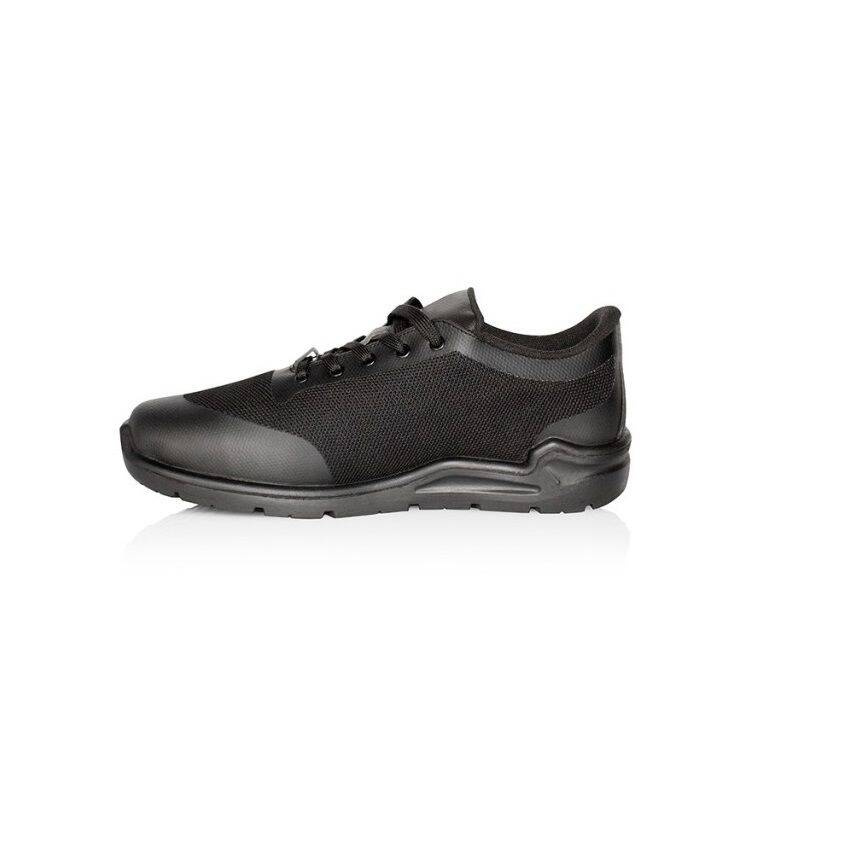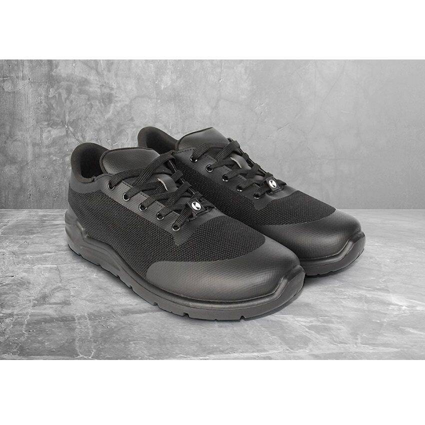 Pantofi de lucru Next-Step de la Karlowsky. Culoare neagră. Unisex. Pantofi de lucru ușori, cu șireturi. Materialul exterior este realizat din țesătură textilă elastică, materialul interior din țesătură, iar branțul moale din spumă sintetică se adaptează formei piciorului. Talpa exterioară este realizată din cauciuc PU cu aderență sporită pe plăci ceramice, detergenți, plăci de oțel și glicerină. Căptușeala pantofului are interior antibacterian. Datorită construcției și greutății reduse, pantofii sunt potriviți pentru utilizare în diverse domenii: bucătărie, servicii, curățenie, îngrijire și wellness, precum și în medicină. Pantofii pot fi spălați la o temperatură de până la 30 de grade. Nu sunt potriviți pentru uscarea în uscător. Disponibili în mărimi de la 35 la 47.