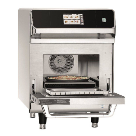Piec konwekcyjno-mikrofalowy Snackjet 200 marki Bartscher to urządzenie, które łączy w sobie zalety pieca konwekcyjnego i kuchenki mikrofalowej. Urządzenie posiada 1024 gotowe programy obróbki termicznej. Piec daje także możliwość programowania indywidualnego, a każdy program może mieć do 15 faz gotowania. Posiada wentylator z możliwością regulacji obrotów. Panel sterowania pozwala na zarządzanie czasem, temperaturą i intensywnością mikrofal. Piec Snackjet 200 posiada zakres temperatury od 25 do 280 °C. Posiada elektroniczny, dotykowy panel sterowania z możliwością regulacji temperatury co 0,1°C. Wbudowany timer daje możliwość zaprogramowania czasu od 0 do 20 minut. Urządzenie posiada też możliwość importowania przepisów wraz zdjęciami z nośników zewnętrznych. Urządzenie wykonane ze stali szlachetnej.