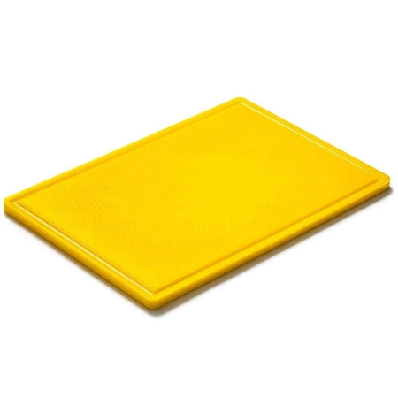 Placa profesională de tăiat în culoarea galbenă, destinată utilizării gastronomice, este un element indispensabil în dotarea fiecărei bucătării. Se remarcă prin suprafața de lucru mare, fabricată din polietilenă durabilă și este destinată tăierii cărnii de pasăre, în conformitate cu sistemul HACCP. Ideală pentru restaurante, hoteluri, catering și alte locații unde siguranța alimentară este o prioritate.