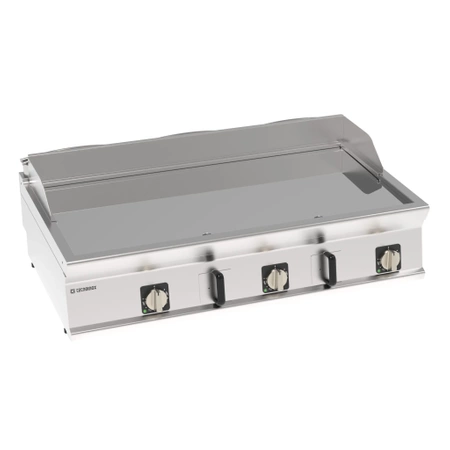 Placa de grătar este echipată cu elemente de încălzire blindate din oțel inoxidabil pentru a asigura distribuirea uniformă a căldurii. Supapa termostatică permite controlul precis al temperaturii de la 70°C la 310°C. Fiecare zonă de gătit are comenzi individuale, oferindu-vă control deplin asupra procesului de gătit. Suprafața cromată a plitei rezistă la coroziune, este ușor de curățat și asigură faptul că aroma alimentelor nu se transferă în vasul următor.