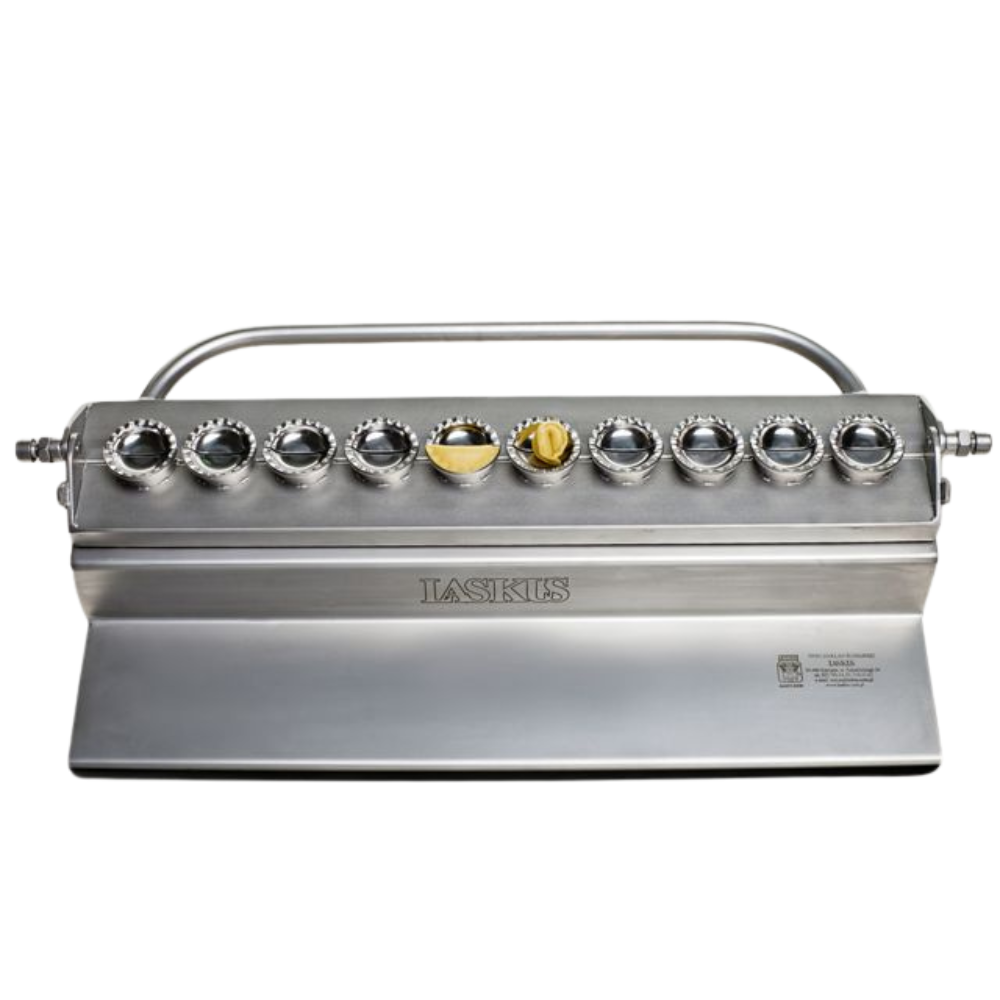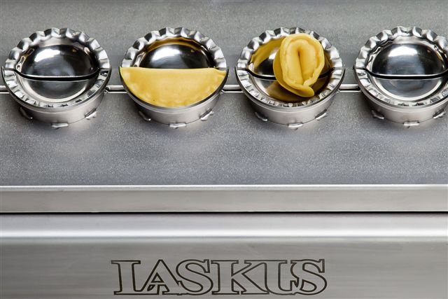 Mașină de găluște manuală de la Hendi, proiectat pentru prepararea ușoară a până la 5 găluște în același timp. Carcasa mașinii de făcut găluște este fabricată din oțel inoxidabil cu finisaj periat. Mâner de presare montat pe întreaga lungime a formei pentru a asigura o presiune uniformă pe matriță și lipirea precisă a găluștelor. Mânerul este fabricat din aluminiu. Balamalele care leagă baza de partea mobilă sunt fabricate din oțel inoxidabil. Distanțier din teflon între cele 2 părți pentru o funcționare lină fără frecare. Suprafața de lucru a fost finisată cu un strat antiaderent, ceea ce face mult mai ușoară îndepărtarea găluștelor lipite. Există 4 picioare antiderapante pe partea inferioară pentru a preveni alunecarea unității în timpul funcționării.