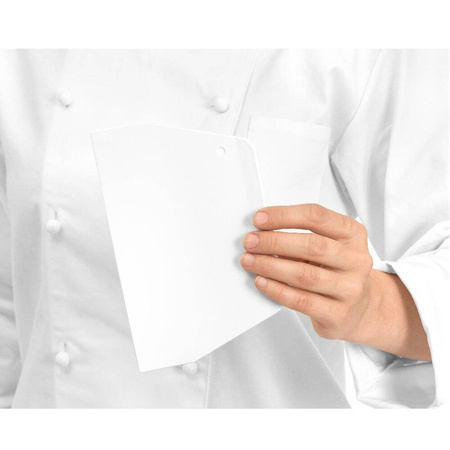 Este un instrument de încredere care va ușura munca zilnică în bucătărie pentru orice pasionat de produse de patiserie. Racleta Forgast se remarcă prin execuția solidă, forma ergonomică și versatilitatea utilizării. Permite colectarea rapidă și eficientă a compozițiilor din vase, precum și menținerea ordinii pe blatul de lucru. Este ușor de curățat, iar orificiul pentru agățare asigură că va fi întotdeauna la îndemână. Este alegerea ideală atât pentru profesioniști, cât și pentru cofetarii amatori care apreciază confortul și eficiența muncii.