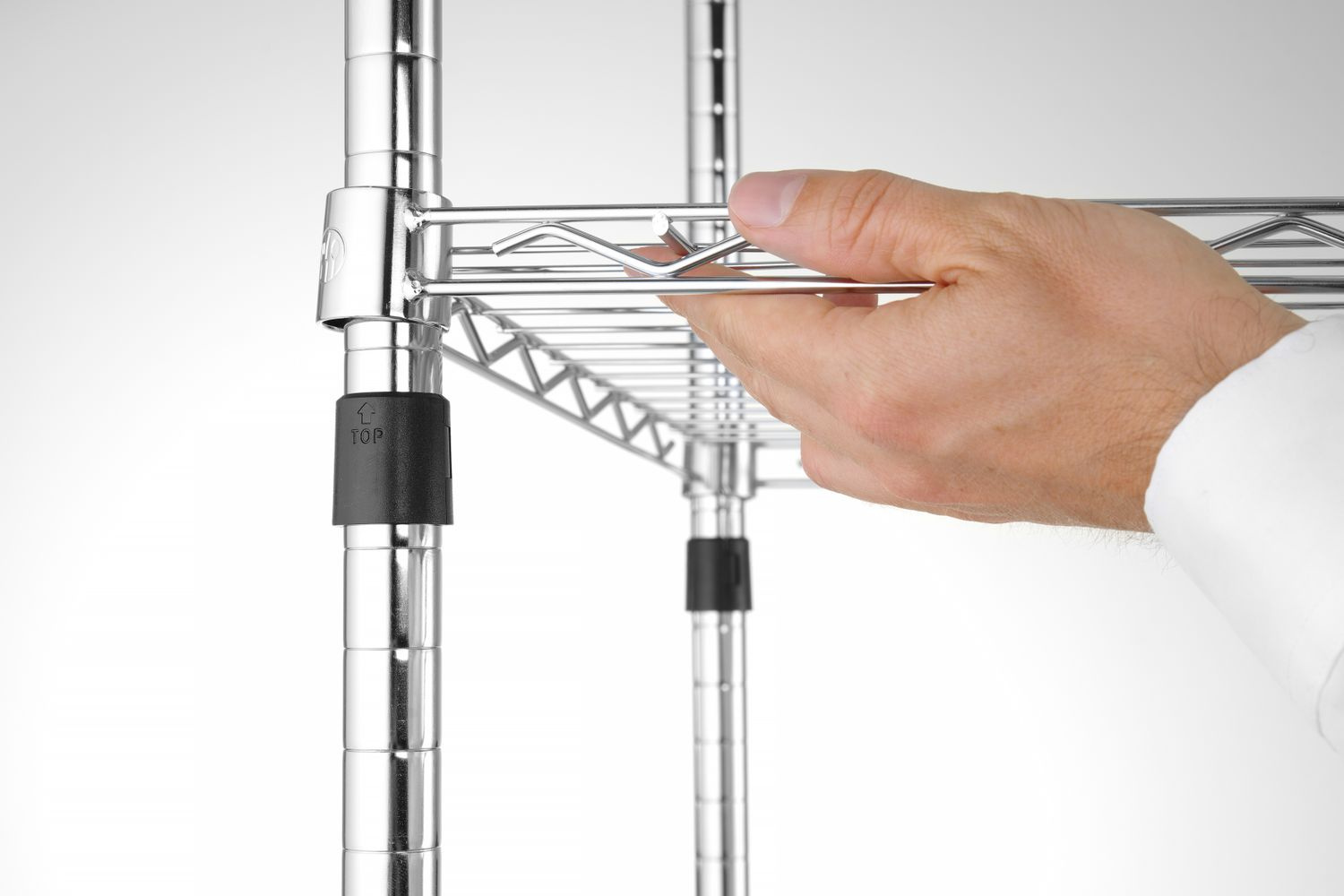 Raft de depozitare cromat echipat cu cinci rafturi reglabile, cu o capacitate maximă de încărcare de 80 kg. Raftul este livrat într-un ambalaj plat pentru asamblare individuală.