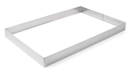 Ramă de copt și cofetărie dreptunghiulară 38.5x28.5 cm. Fabricată din oțel inoxidabil. Ideală pentru modelarea prăjiturilor și preparatelor. Grosimea oțelului inoxidabil: 1,5 mm.