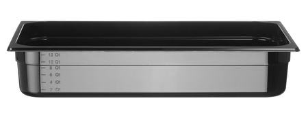 Recipient GN 1/1, adâncime 10 cm. Fabricat din policarbonat negru de înaltă calitate, care nu absoarbe mirosuri sau arome. Rezistent la temperaturi de la -40°C până la 110°C. Poate fi stivuit și spălat în mașina de spălat vase.