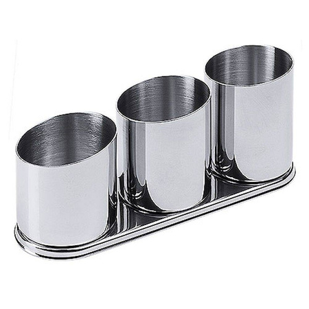 Recipientul pentru tacâmuri CONTACTO este o soluție practică și durabilă pentru depozitarea și organizarea tacâmurilor în bucătărie, restaurant sau bufet. Fabricat din oțel inoxidabil, se remarcă prin rezistența la coroziune și ușurința cu care se curăță. Trei compartimente separate permit sortarea comodă a diferitelor tipuri de tacâmuri.
