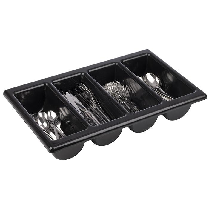 Recipient pentru tacâmuri, GN 1/1, polipropilenă, negru, 53x32.5x10 cm | APS 11954