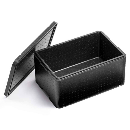 Este inclus un recipient izolat termic cu capac, care permite utilizarea recipientelor GN standard cu o înălțime de până la 200 mm (se achiziționează separat). Acest lucru facilitează împărțirea interiorului recipientului în mai multe secțiuni și transportarea simultană a diferitelor alimente, menținându-le temperatura și prospețimea. Containerul are numeroase mânere pentru o manipulare ușoară și file speciale pe capac care garantează stabilitatea atunci când se stivuiesc mai multe containere.