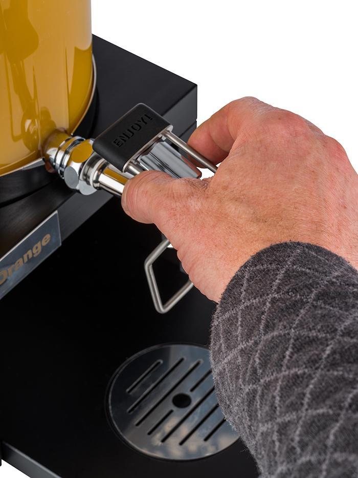 - Operare fără contact – permite turnarea băuturilor prin apăsarea cu marginea paharului, reducând contactul cu suprafața robinetului și sporind igiena.