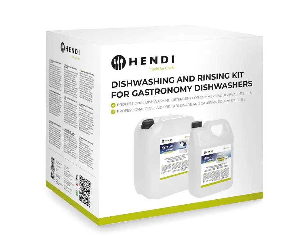 Setul de produse profesionale marca Hendi oferă suport complet pentru spălarea și îngrijirea vaselor în mașinile de spălat vase. Garantează o curățenie excelentă și o strălucire perfectă.