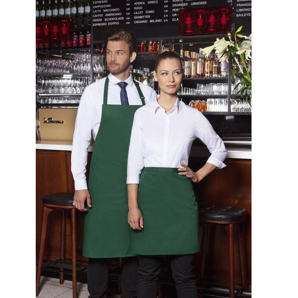 Șorț Basic Karlowsky. Culoare verde pădure. Realizat din 65% poliester și 35% bumbac. Țesătură diagonală. Dimensiuni 70 x 55 cm. Șorț cu curea în talie confecționată din același material. Cureaua este întărită cu puncte suplimentare de tensiune. Potrivit pentru spălare la temperaturi de până la 60 °C. Nu se albesc. Nu se usucă în uscător. Se calcă la temperaturi de până la max 150 °C.
