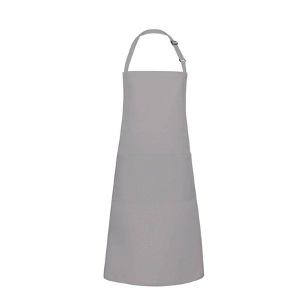 Șorț de bucătar basic marca Karlowsky. Culoare gri bazalt. Realizat din 65% poliester / 35% bumbac. Țesătură diagonală. Dimensiune 75x90 cm. Șorț cu bretele realizate din același material ca șorțul, cu puncte de tensiune întărite – bretea la gât cu cataramă pentru reglarea lungimii de aprox. 70 cm – buzunar aplicat cu 2 compartimente (40 x 20 cm). Potrivit pentru spălare la mașină și curățare chimică. Poate fi călcat.