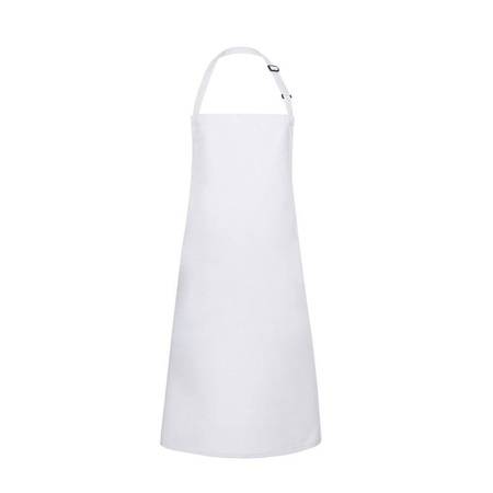 Șorț de bucătar de bază de Karlowsky. Culoare albă. Fabricat în 65% poliester / 35% bumbac. Țesătură diagonală. Dimensiuni 75x90 cm. Șorț cu curele din material pentru șorț cu puncte de tensiune întărite - curea pentru gât cu cataramă pentru reglarea lungimii aprox. 70 cm. Se poate spăla la mașină și se poate curăța la uscat. Potrivit pentru călcat.