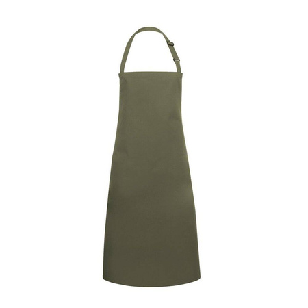 Șorț de bucătar de bază de Karlowsky. Culoare verde mușchi. Fabricat în 65% poliester / 35% bumbac. Țesătură diagonală. Dimensiuni 75x90 cm. Șorț cu curele din material pentru șorț cu puncte de tensiune întărite - curea pentru gât cu cataramă pentru reglarea lungimii aprox. 70 cm. Se poate spăla la mașină și se poate curăța la uscat. Potrivit pentru călcat.