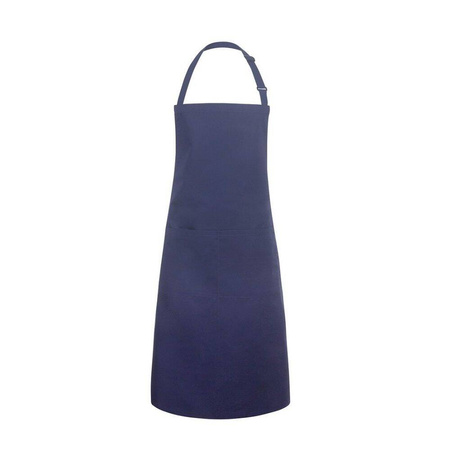 Șorț de bucătar basic marca Karlowsky. Culoare bleumarin. Realizat din 65% poliester / 35% bumbac. Țesătură diagonală. Dimensiuni 75x90 cm. Șorț cu bretele realizate din același material ca șorțul, cu puncte de tensiune întărite – bretea la gât cu cataramă pentru reglarea lungimii aprox. 70 cm – buzunar aplicat cu 2 compartimente (40 x 20 cm). Potrivit pentru spălare la mașină și curățare chimică. Potrivit pentru călcat.