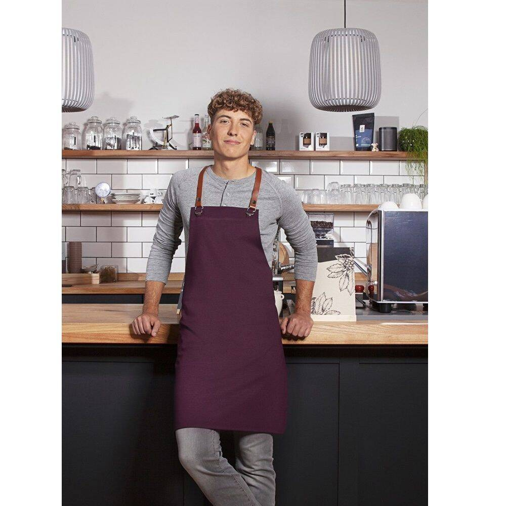 Șorț Green Generation X-Style de la Karlowsky. Fabricat din 65% poliester reciclat și 35% bumbac. Culoare vânătă. Dimensiune 70 x 85 cm. Poliesterul este obținut 100% din plastic reciclat. Design atemporal și modern. Bretelele din piele ale șorțului purtate pe umeri reduc presiunea asupra gâtului, iar capsele permit prinderea și scoaterea ușoară. Reglare elastică a lungimii și înălțimii – bretelele pot fi încrucișate la spate, trecute prin catarame și apoi legate. Marginile șorțului sunt finisate modern și în trepte. Poate fi spălat la max. 60 °C. A nu se albi. Se poate călca la max. 150 °C.