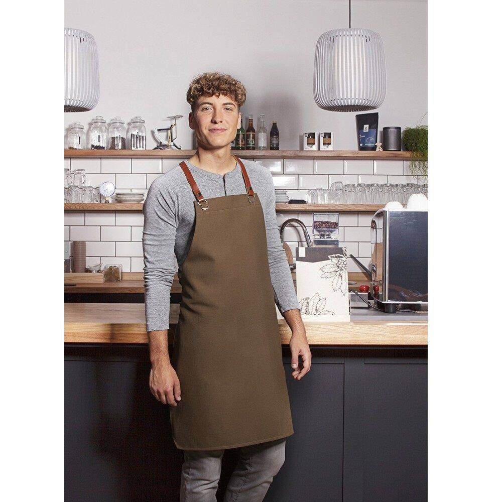 Șorț Green Generation X-Style de la Karlowsky. Realizat din 65% poliester reciclat și 35% bumbac. Culoare scorțișoară. Dimensiuni: 70 x 85 cm. Poliesterul este obținut 100% din plastic reciclat. Design atemporal și modern. Bretelele din piele ale șorțului, purtate pe umeri, reduc presiunea asupra gâtului, iar sistemul de închidere cu capse permite punerea și scoaterea ușoară. Reglare elastică a lungimii și înălțimii – bretelele pot fi încrucișate la spate, trecute prin catarame și apoi legate. Marginile șorțului sunt finisate modern, în trepte. Se poate spăla la temperaturi de până la 60 °C. Nu se folosește înălbitor. Călcați la temperaturi de până la 150 °C.