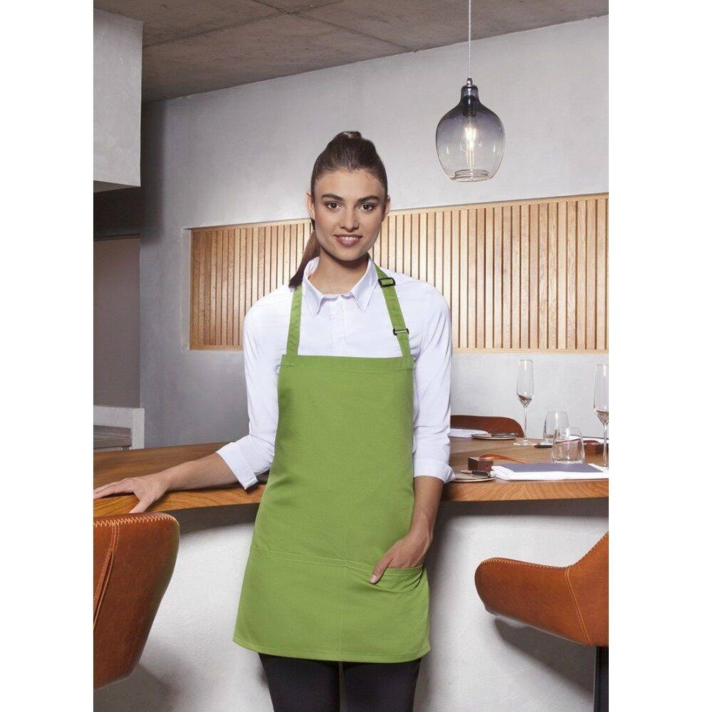 Șorț de bucătar scurt basic marca Karlowsky. Culoare lime. Realizat din 65% poliester / 35% bumbac. Țesătură diagonală. Dimensiuni 75x60 cm. Șorț cu bretele din materialul șorțului – durabilitate suplimentară datorită protecției cusăturilor de pe bretele – durabilitate suplimentară datorită protecției cusăturilor de pe bretele – lungimea bretelei reglabilă ușor și flexibil cu ajutorul cataramei (lungime până la 70 cm) – buzunar funcțional aplicat cu 2 compartimente (40 x 20 cm). Potrivit pentru spălare la mașină și curățare chimică. Poate fi călcat.