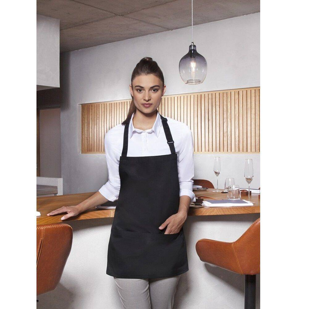 Șorț de bucătar scurt basic marca Karlowsky. Culoare neagră. Realizat din 65% poliester / 35% bumbac. Țesătură diagonală. Dimensiune 75x60 cm. Șorț cu bretele din materialul șorțului - durabilitate suplimentară datorită protecției cusăturilor de pe bretele - durabilitate suplimentară datorită protecției cusăturilor de pe bretele - lungimea bretelelor ușor și flexibil reglabilă cu ajutorul unei catarame (lungime până la 70 cm) - buzunar funcțional aplicat cu 2 compartimente (40 x 20 cm). Potrivit pentru spălare la mașină și curățare chimică. Potrivit pentru călcare.