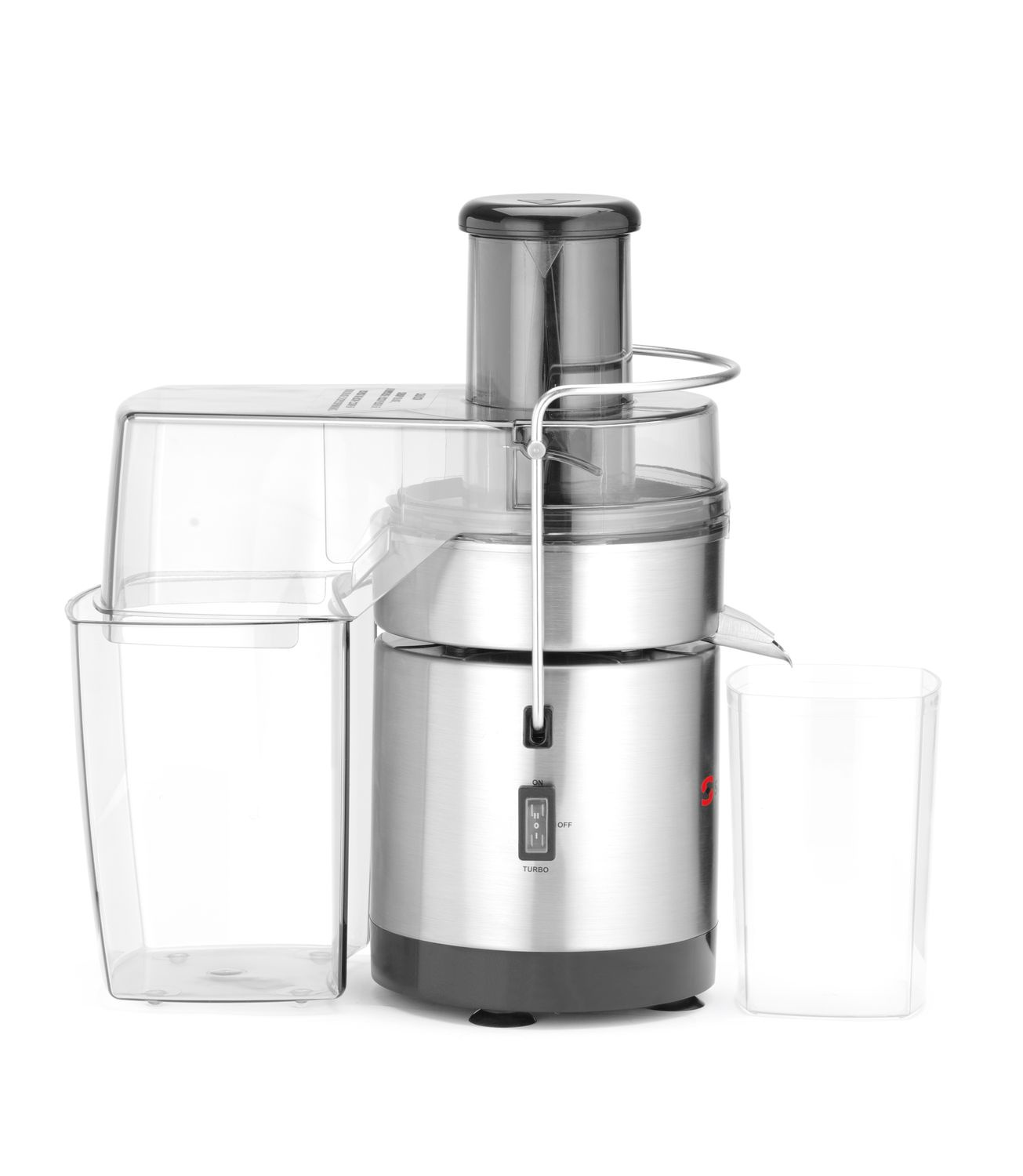 Un comutator turbo care crește temporar viteza face posibilă și curățarea coșului și echilibrează eventualele vibrații. Ușurința de utilizare și curățare. Asamblare și dezasamblare simplă și intuitivă a componentelor individuale. Blocare de siguranță pentru a dezactiva rotația atunci când capacul este îndepărtat. Carcasa motorului fabricată din oțel inoxidabil. Coș puternic.