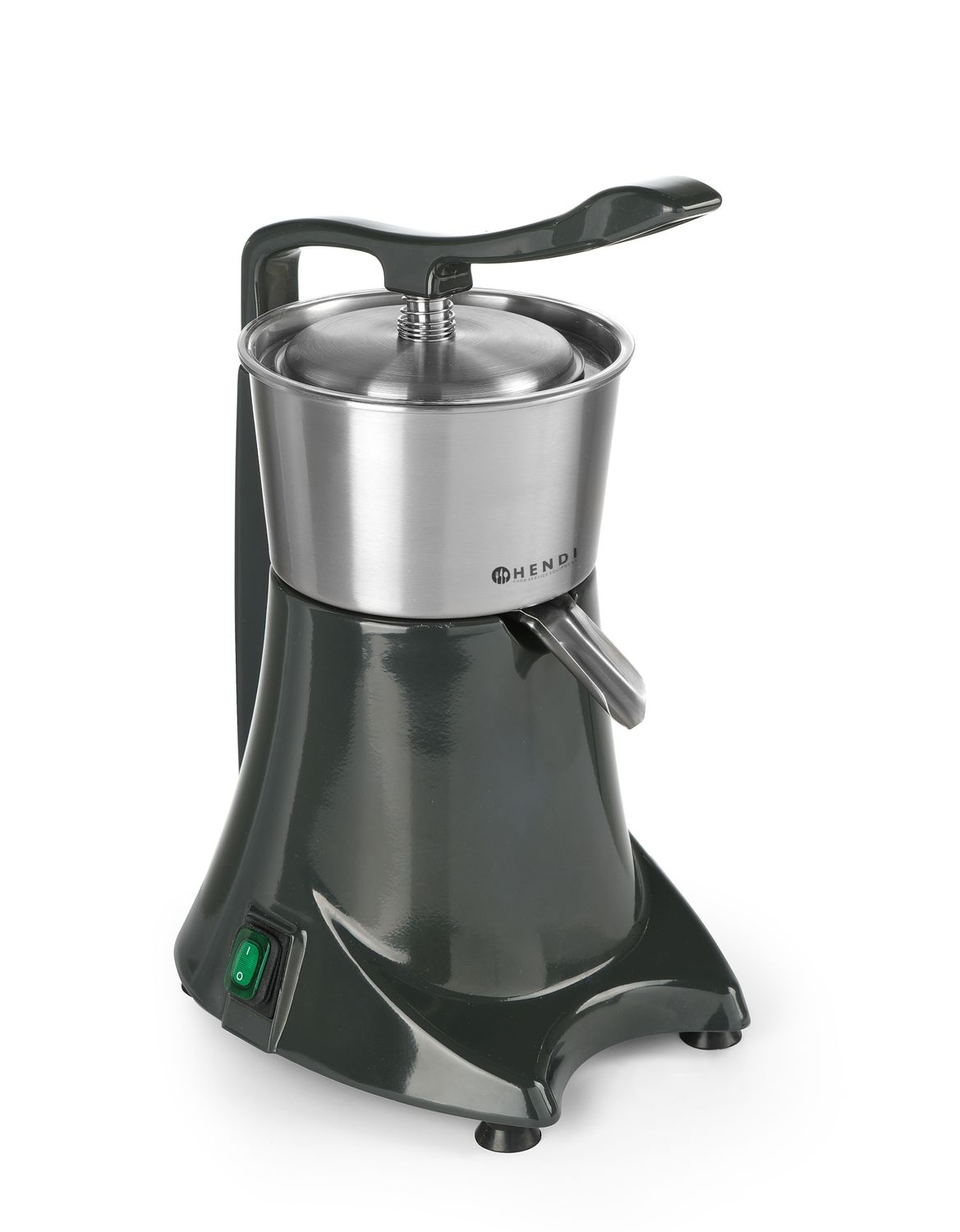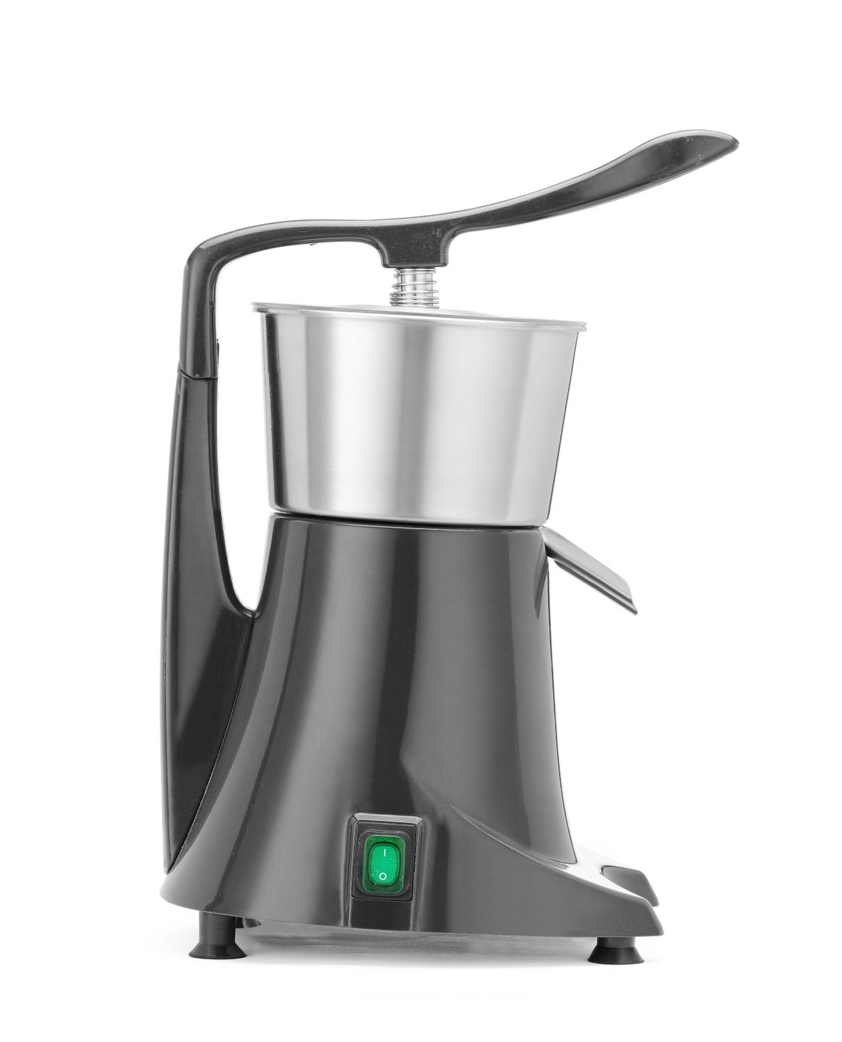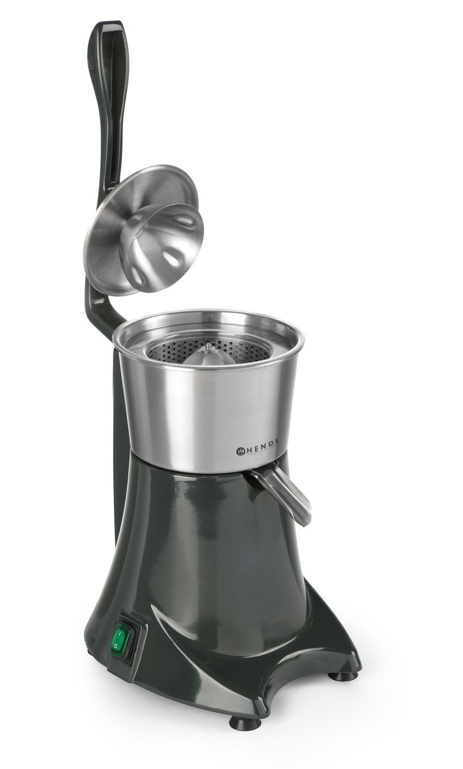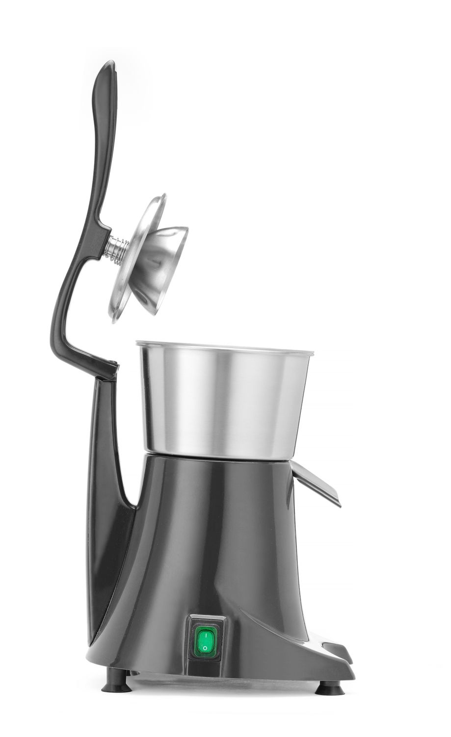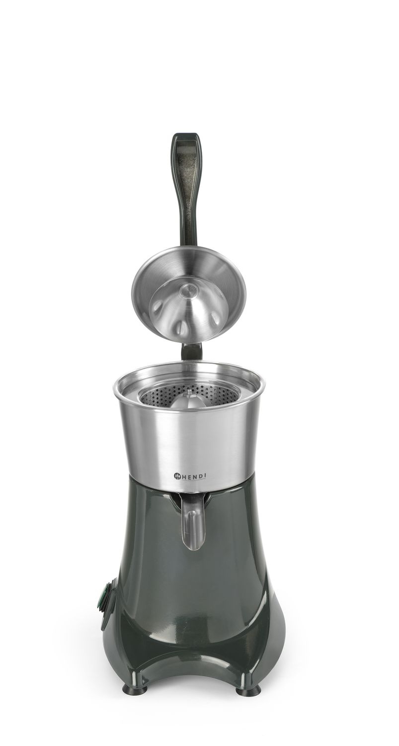 Storcător de citrice cu capac de presare. Capacul de presare asigură o operare ușoară și sigură. Recipientul detașabil pentru suc și conul cu sită sunt fabricate din oțel inoxidabil. Protecție împotriva stropirii. Viteză de rotație - 980 rpm