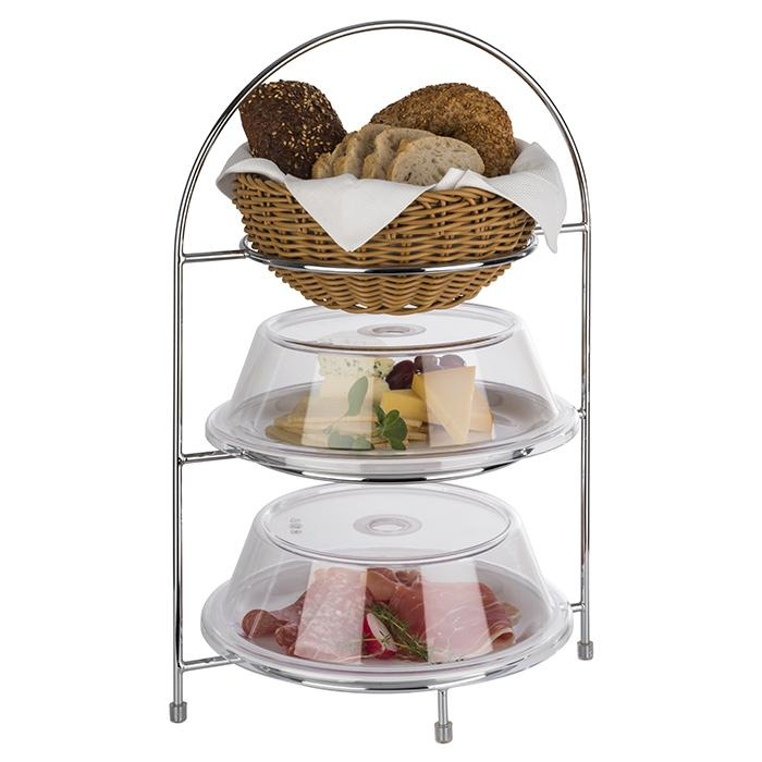 Suportul de bufet este ideal pentru servirea preparatelor la petreceri, banchete sau în restaurante. Permite aranjarea estetică a farfuriilor cu gustări, deserturi, fructe sau alte feluri, facilitând accesul oaspeților și evidențiind atractivitatea produselor prezentate. Datorită construcției sale, economisește spațiu pe masă și ajută la o mai bună organizare a spațiului.