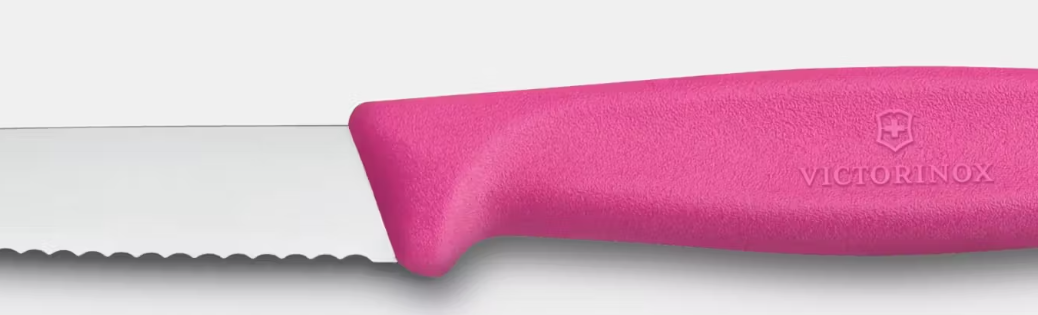 Cuțit zimțat pentru legume și fructe cu mâner portocaliu de la Victorinox. Ideal pentru felierea legumelor și fructelor moi, de ex. roșii. De asemenea, funcționează bine ca un cuțit de masă. Lama zimțată lungă de 11 cm a fost fabricată din oțel inoxidabil laminat pentru o rezistență sporită, astfel încât cuțitul să rămână ascuțit pentru o perioadă lungă de timp. Mâner de cuțit din polipropilenă portocalie. Forma ergonomică a mânerului face ca cuțitul să stea bine în mână, ceea ce îmbunătățește confortul de lucru. Lungimea totală a cuțitului este de 22 cm. Cuțitul poate fi spălat în mașina de spălat vase.