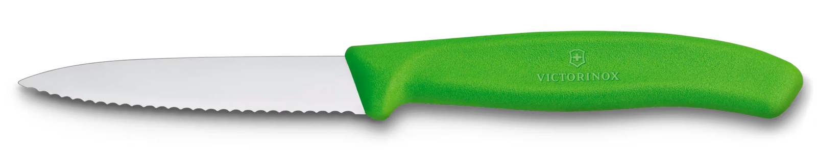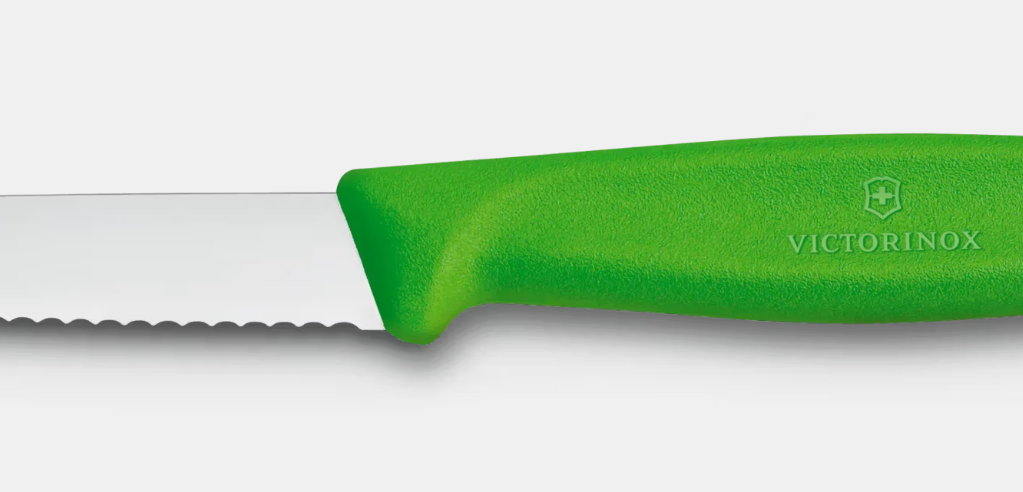 Cuțit zimțat pentru legume și fructe cu mâner portocaliu de la Victorinox. Ideal pentru felierea legumelor și fructelor moi, de ex. roșii. De asemenea, funcționează bine ca un cuțit de masă. Lama zimțată lungă de 11 cm a fost fabricată din oțel inoxidabil laminat pentru o rezistență sporită, astfel încât cuțitul să rămână ascuțit pentru o perioadă lungă de timp. Mâner de cuțit din polipropilenă portocalie. Forma ergonomică a mânerului face ca cuțitul să stea bine în mână, ceea ce îmbunătățește confortul de lucru. Lungimea totală a cuțitului este de 22 cm. Cuțitul poate fi spălat în mașina de spălat vase.