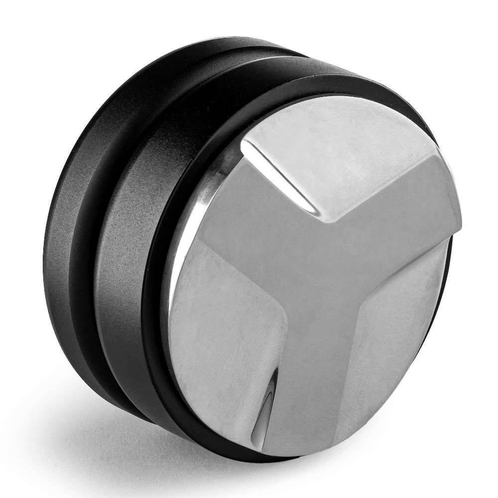 Tamper cu reglare a înălțimii de la marca Forgast. Reglarea lină a înălțimii permite obținerea întotdeauna a aceleiași presiuni asupra cafelei din portafiltru. Potrivit pentru majoritatea portafiltrelor.