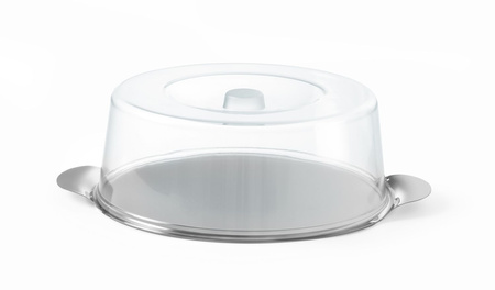 Tavă rotundă cu capac ideală pentru prezentarea prăjiturilor. Tava este realizată din oțel inoxidabil, iar capacul - din material plastic.