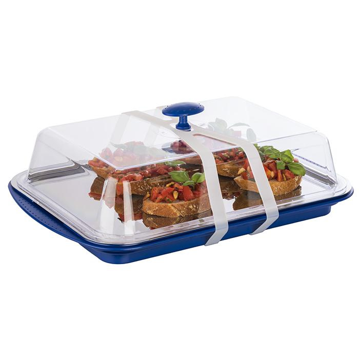 - Design estetic – culoarea albastră și capacul transparent fac ca tava să arate elegant pe orice masă.