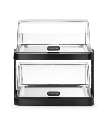 Tavă dublă răcită cu capac. Fabricată din nailon. Capac transparent tip rolltop. Setul conține 2 tăvi din oțel inoxidabil și 4 elemente de răcire.