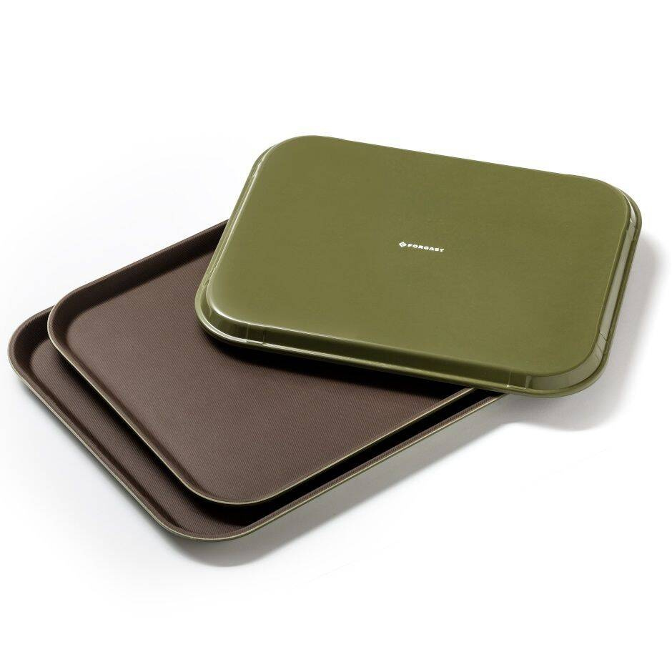 Tava Forgast a fost proiectată pentru utilizare intensivă în industria gastronomică. Suprafața de lucru, acoperită cu strat de cauciuc, nu doar că previne alunecarea vaselor, dar facilitează și menținerea igienei – este suficient să ștergeți tava cu o cârpă umedă. Partea inferioară de culoare verde crește valoarea estetică și diferențiază tava de alte produse. Tava este potrivită atât pentru servirea în sala restaurantului, cât și pentru catering, banchete sau evenimente în aer liber.