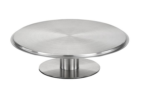 Platoul rotativ realizat din oțel inoxidabil este un element practic și elegant pentru dotarea bucătăriei sau cofetăriei. Datorită funcției de rotire, facilitează servirea și decorarea prăjiturilor și torturilor, iar utilizarea sa universală este ideală atât pentru întâlniri zilnice, cât și pentru ocazii mai mari. Baza antiderapantă protejează suprafața mobilierului, iar finisajul mat conferă un aspect stilat întregului produs.