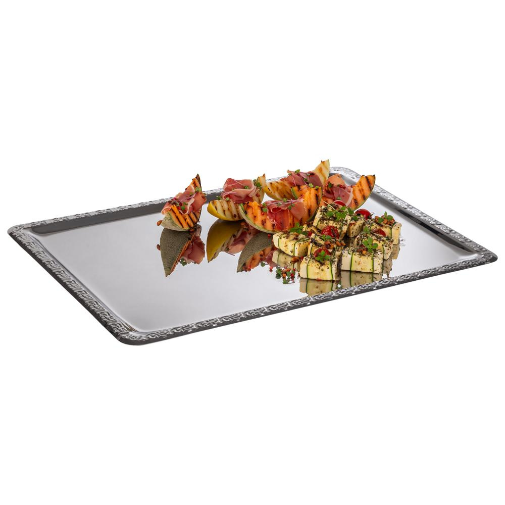 Tavă SCHÖNER ESSEN, cu margine decorativă, din oțel inoxidabil, 63.5x44.5x2 cm | APS 384