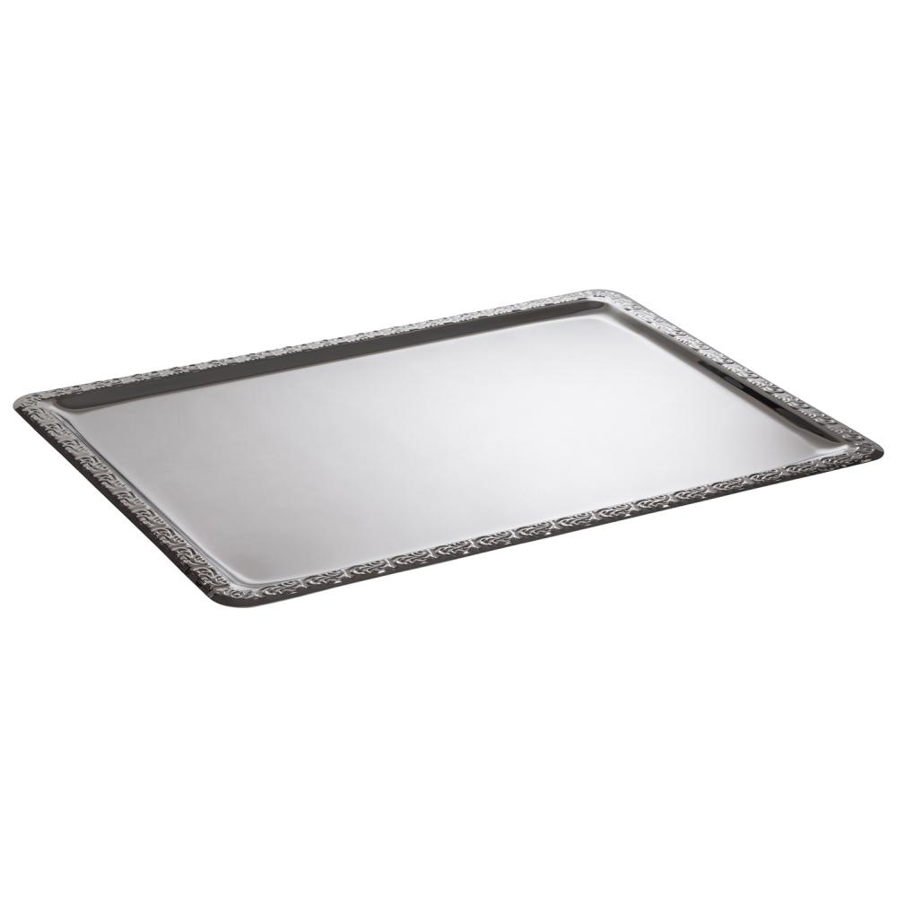 Produsul este realizat din oțel inoxidabil de înaltă calitate 18/0, care oferă rezistență la deteriorări mecanice și ușurință în curățare. Marginea decorativă nu are doar un rol estetic, ci și consolidează structura tăvii, crescându-i durabilitatea. Suprafața netedă permite o curățare rapidă și igienică după fiecare utilizare.
