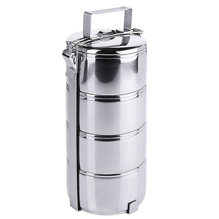 Termosul este realizat din oțel inoxidabil cu finisaj lucios, ceea ce garantează durabilitatea și rezistența la deteriorări mecanice. Echipat cu mânere practice și capac, oferă confort în utilizare și ușurință în manevrare. Datorită recipientelor separate, este posibilă păstrarea diferitelor feluri de mâncare separat.
