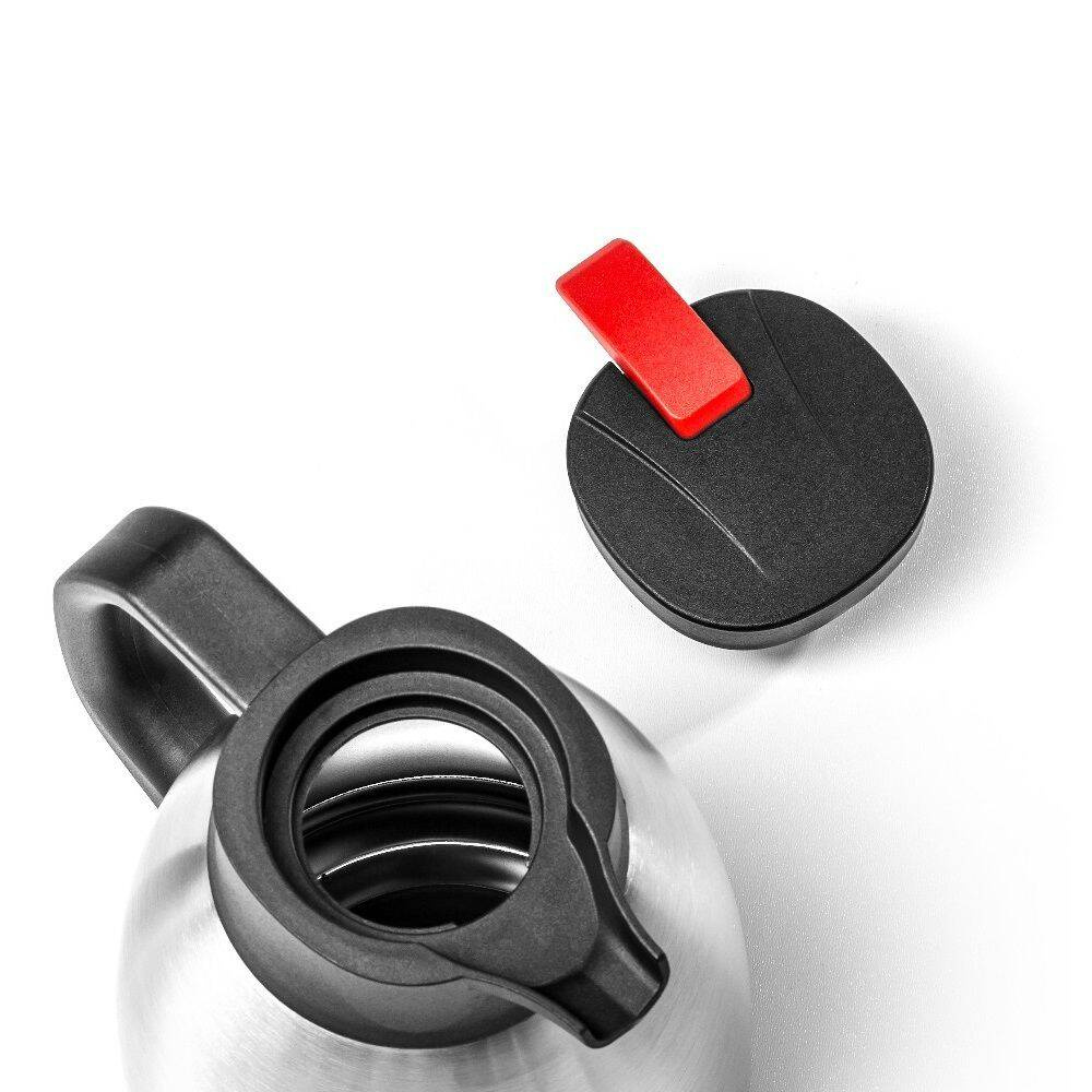 • Sistem de deschidere cu buton – permite turnarea rapidă și comodă a băuturii fără a fi necesară deșurubarea capacului. Acest lucru facilitează folosirea în timpul evenimentelor dinamice și permite servirea eficientă a băuturilor chiar și unui număr mare de participanți.