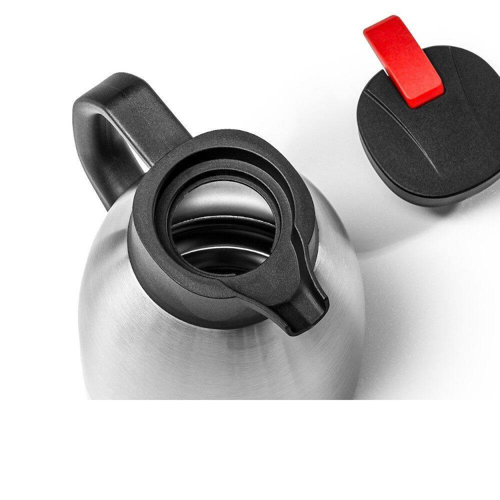 Insertul din oțel inoxidabil asigură o izolație termică excelentă, menținând temperatura băuturilor timp de multe ore. Datorită capacității de 2 litri, termosul este ideal pentru conferințe, întâlniri de afaceri, săli de curs sau servicii de catering. Permite servirea comodă a băuturilor calde chiar și unui număr mare de participanți, fără a fi nevoie de reumpleri frecvente.