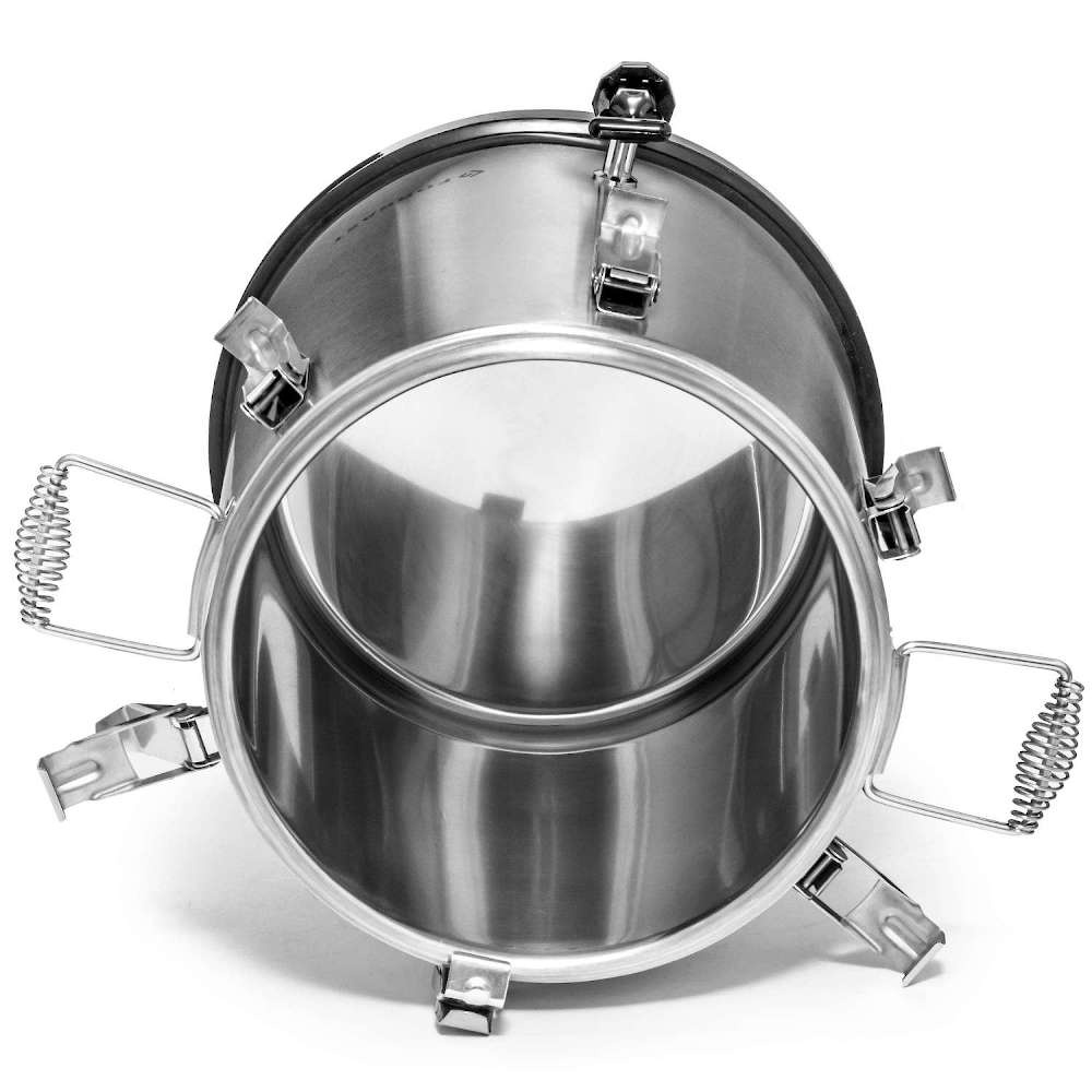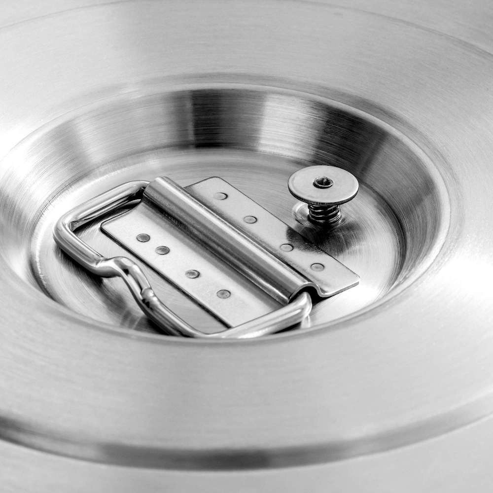Pachetul include mânere ergonomice pentru transport, care facilitează mutarea chiar și a recipientului plin. Capacul cu șase cleme solide și garnitura din silicon asigură etanșeitatea și siguranța în timpul transportului. Supapa suplimentară de aerisire din capac permite deschiderea în siguranță a termosului cu conținut fierbinte, iar baza din cauciuc protejează împotriva alunecării accidentale și asigură izolație suplimentară la bază.